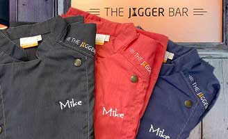 Bestickte Kochjacken für die Jigger Bar
